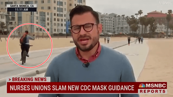 Rezultati u kap në sfondin e një xhirimi të drejtpërdrejtë televiziv, në të cilin Guad Venegas i MSNBC raportoi nga Santa Monica, Kaliforni, se si infermierët po reagonin ndaj udhëzimeve të fundit nga Qendra për Kontrollin dhe Parandalimin e Sëmundjeve për mbajtjen e maskave.