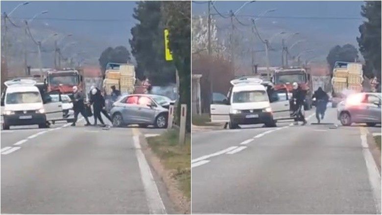 Siç shihet në pamjet video nga vendi i ngjarjes, disa individë të veshur me “maska të bardha” ndaluan automjetin në mes të rrugës, përcjell Telegrafi.