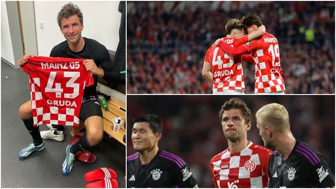 “Faleminderit Bryan Gruda për fanellën tënde, vazhdo të punosh shumë miku im. Një fitore e rëndësishme për ne pas pushimit ndërkombëtar. Asnjëherë e lehtë në Mainz”, ka shkruar Thomas Muller që ka pozuar me fanellën e tij.