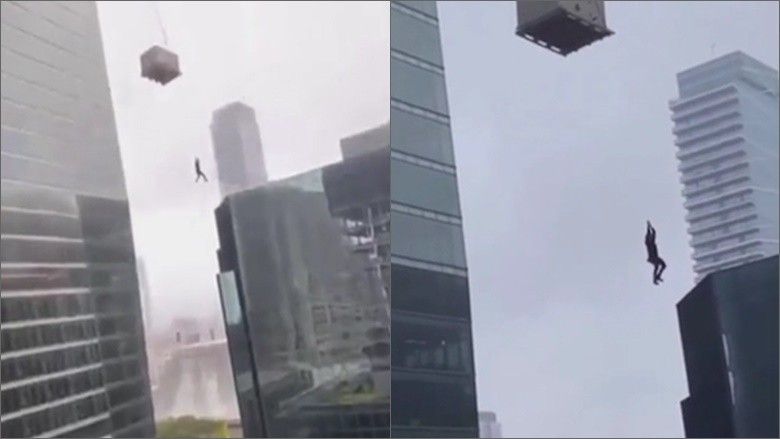 Sipas mediave të huaja, përcjell Telegrafi, në videon disa sekondëshe, personi i paidentifikuar nga Toronto mund të shihet duke u mbajtur në një si litar ndërsa një ngarkesë sipër tij ulet në tokë.