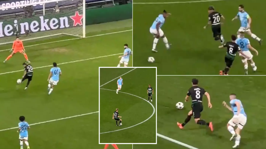 Një video nga tribunat shfaq strategjinë e shkëlqyer pasi u deshën vetëm tetë pasime për të hyrë në zonën e Man City dhe për të shënuar.