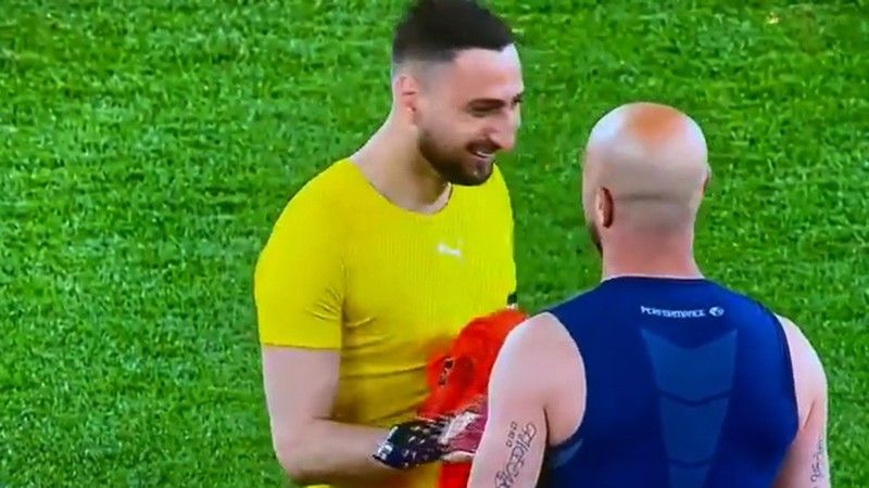 Donnarumma shfaqet i qeshur dhe i disponuar, derisa tifozët e Milanit janë të pikëlluar, sepse klubi i tyre i zemrës rrezikon pjesëmarrjen në Ligën e Kampionëve.