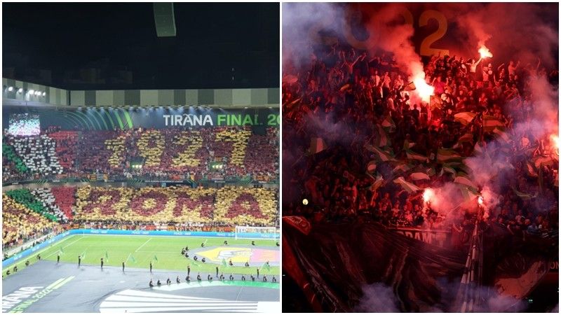 Tifozët e Romës dhe Feyenordit kanë dhuruar spektakël pak pa filluar ndeshja me koreografit e tyre.