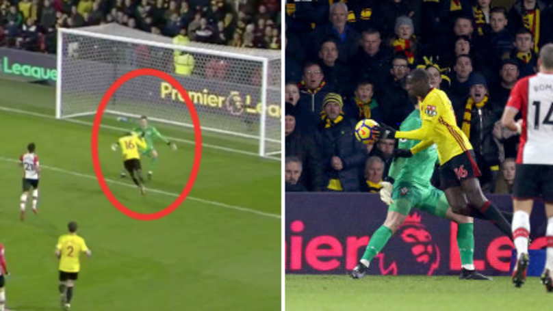 Tifozët e Southamptonit të nervozuar me gjyqtarin, mesfushori i Watfordit barazoi rezultatin duke shënuar me dorë (Video)