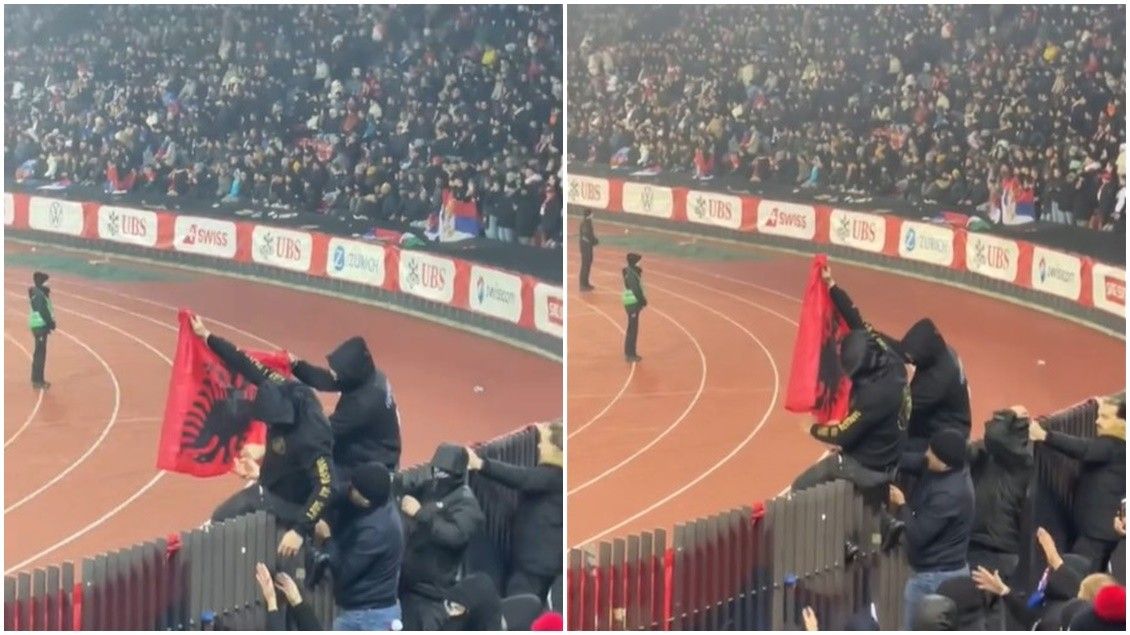 Në një moment gjatë ndeshjes, disa tifozë serb vendosen ta djegin një flamur shqiptar, ndërsa nuk kanë munguar as thirrjet anti-shqiptare kohë pak kohe.