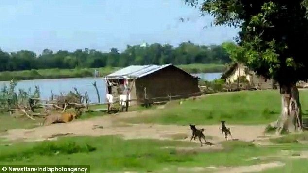 Kafshët shtëpiake lehën fuqishëm dhe e zmbrapsën kafshën grabitçare që duket se ka pasur shënjestër dy fëmijë që po luanin në atë fshat të Katarnias, që ndodhet në pjesën kufitare të Nepalit, transmeton Telegrafi.