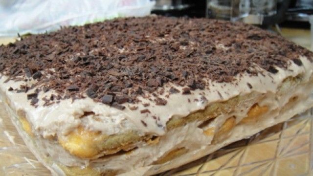 Në tavë fillojmë shtrojmë biskotat duke i lyer me parë me kafe. Vendosim një shtrese biskota dhe me pas hedhim një shtresë kremi. E hapim mirë në të gjithë sipërfaqen e tavës.