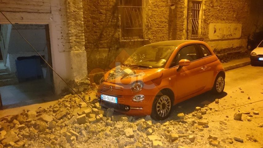 Stuhia i ka lëshuar tullat e palatit mbi një automjet që ndodhej i parkuar poshtë godinës. Mjeti i demtuar është tip Fiat 500 me targë AA500RY./abcnews.al/