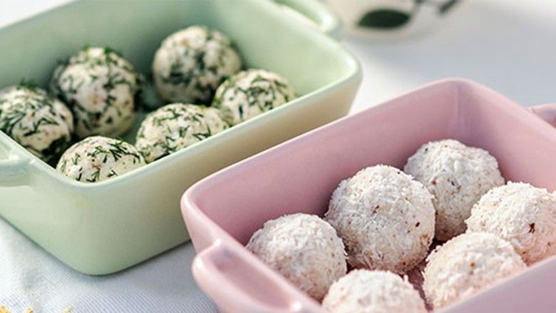Topthat e kripur që në fund shijojnë ndryshe nga njëri tjetri, mund të përdoren për shtrime tryezash në kopsht, apo darka të ngeshme në ballkon, të shoqëruara me pak verë.Përbërësit:▪ 300 gr gjizë ▪ 60 gr djath Parmigiano ▪ 120 gr arrë kokosi e grirë ▪ 80 gr bajame të grira ▪ Kripë, piper ▪ Arrëmyshk (arrë moskat) ▪ Bukë e thekur e grirë ▪ Disa degë kopërPërgatitja: