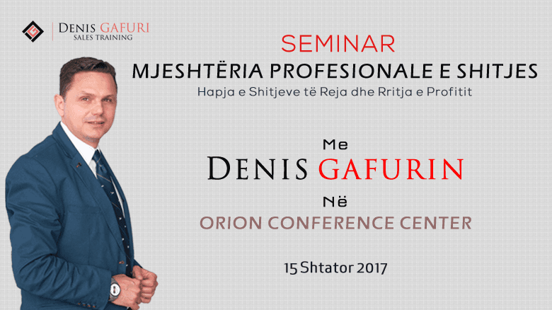 Kjo ngjarje zhvillohet nga eksperti i shitjes Denis Gafuri me një eksperiencë prej mbi njëzet e pesë vite në shitje, dhe bërjen e biznesit me kompani të suksesshme (vizitoni: www.denisgafuri.com)