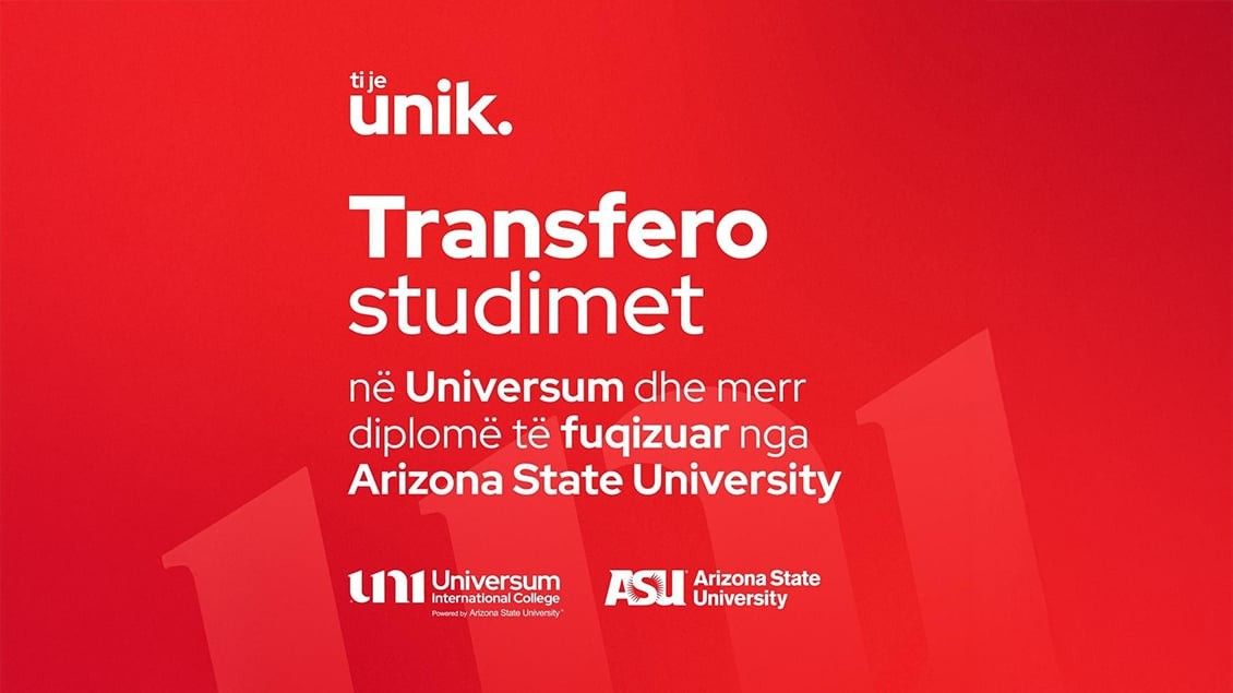 Krijo suksesin tënd, me edukim amerikan në UNI – Universum International College, fuqizuar nga Arizona State University, Universiteti më i madh publik në SHBA dhe nr.1 për Inovacion, për të nëntin vit me radhë.