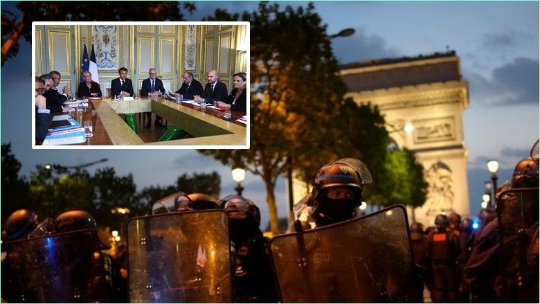 Presidenti Emmanuel Macron është takuar me ministra dhe zyrtarë të lartë të sigurisë për të diskutuar situatën në të gjithë Francën.
