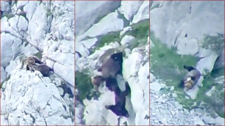 Një video e betejës, e xhiruar nga dy alpinistë, tregoi nënën duke shtyrë mashkullin shumë më të madh përpara se dyshja të “zhytej” dhjetëra metra poshtë një shpati mali shkëmbor në Palencia.
