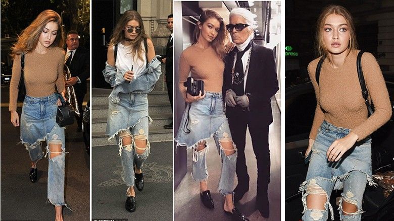 Manekinia Gigi Hadid na ka prezantuar modelin shumë origjinal të xinseve-fundeve-pantallonave.