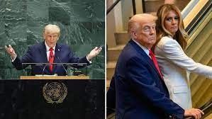 Në një postim në mediat sociale, presidenti amerikan iu referua një ndalese të papritur të një shkallë lëvizëse ndërsa ai dhe Zonja e Parë, Melania Trump shkelën mbi të, një teleprompter që nuk funksiononte gjatë fjalimit të tij dhe një problemi me audion.