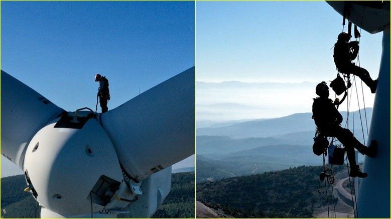 Andaj, për të bërë riparime, teknikët e erës zakonisht duhet të ngjiten deri në 100 metra, ndërsa transportojnë të gjitha mjetet, kompjuterët dhe pajisjet e sigurisë të nevojshme për të kryer punën.