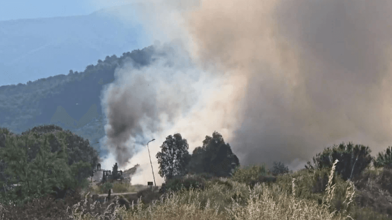 Tymi që vazhdon tashmë prej në shumë se 15 orësh ka mbuluar të gjithë zonën. Vazhdon përpjekja e disa dhjetëra efektivëve zjarrfikës për fikjen e zjarrit.
