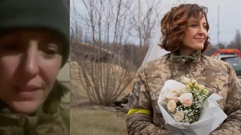Por lulet shumë shkurt i mbajti në duar një ushtare ukrainase, e cila u martua të dielën, raporton klankosova.