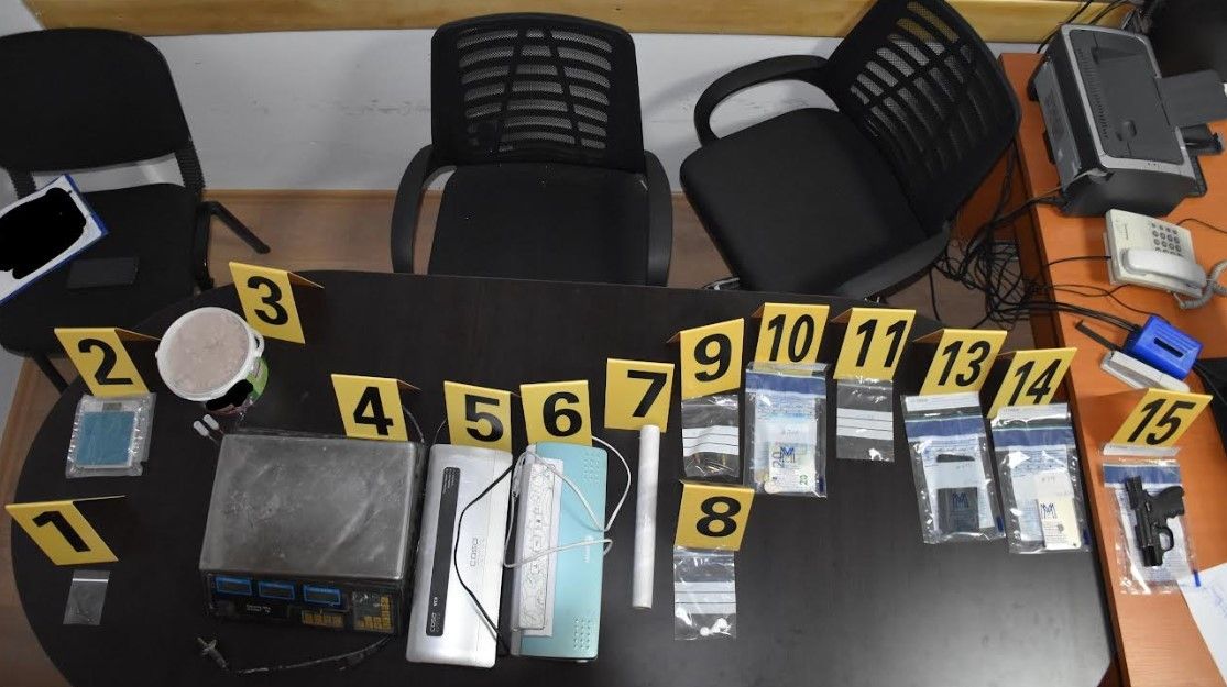 Tre fishekë kalibër i panjohur, dy peshore digjitale, një kovë plastike me substancë të dyshuar për narkotikë heroinë pesha 1403.96 gramë; dy aparate për vakum, një rolle najloni për mbështjellje të substancave narkotike; katёr doza substancë të dyshuar narkotike lloji kokainë me peshë 2.076 gramë.
