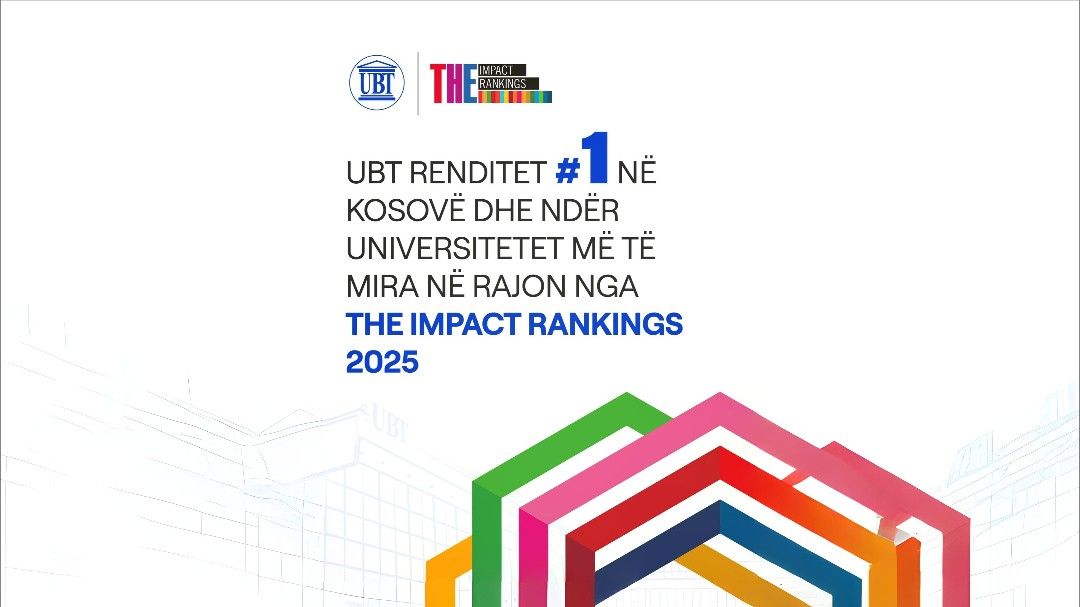 UBT ka dëshmuar edhe një herë përkushtimin e tij ndaj cilësisë dhe zhvillimit të qëndrueshëm, duke u renditur në mesin e universiteteve më të mira në rajon sipas THE Impact Rankings 2025 – klasifikimi global që mat performancën e universiteteve në përmbushjen e Qëllimeve të Zhvillimit të Qëndrueshëm (SDGs) të Kombeve të Bashkuara.