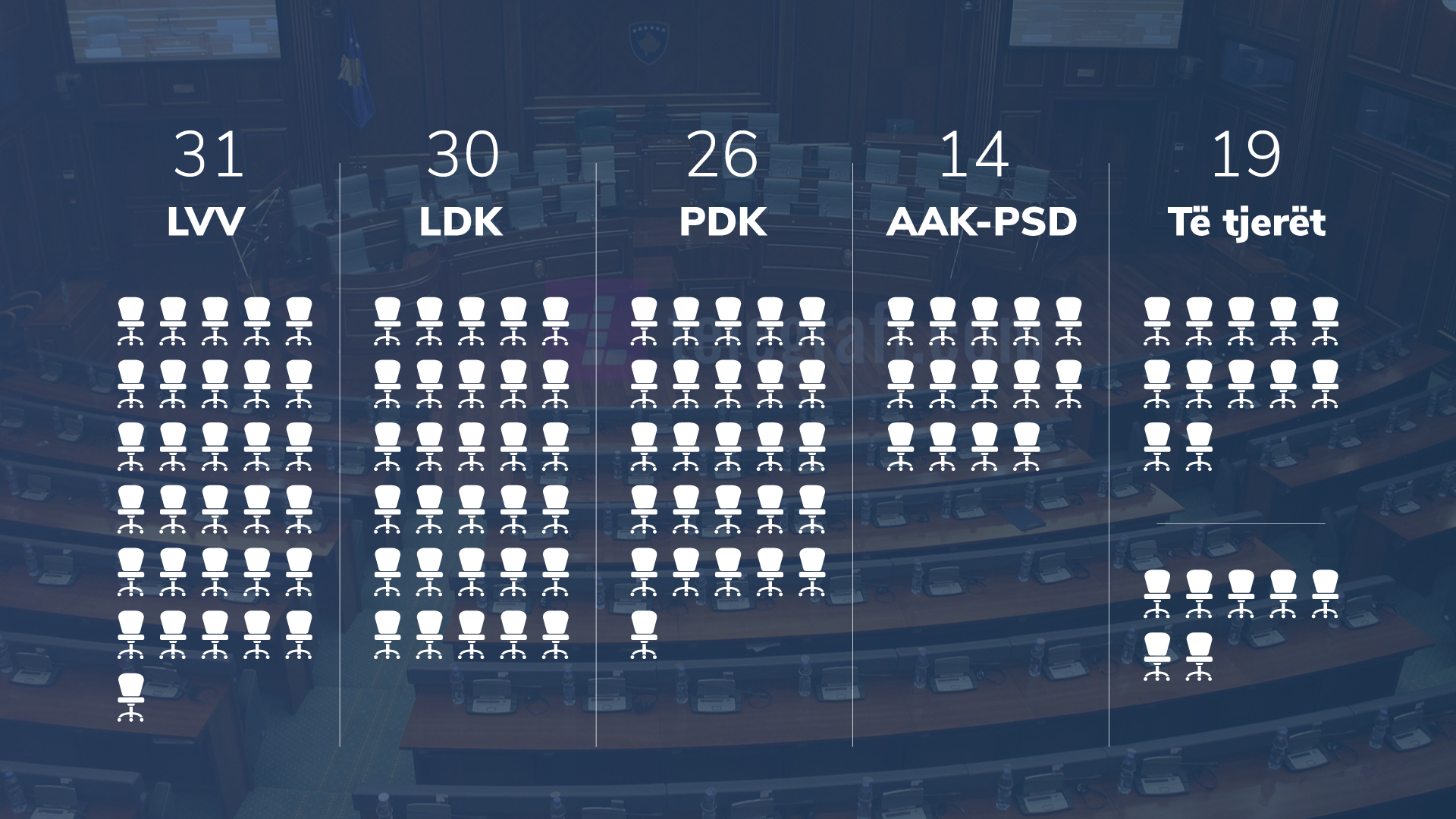 Ulëset që pritet t'i marrin partitë në Kuvendin e Kosovës