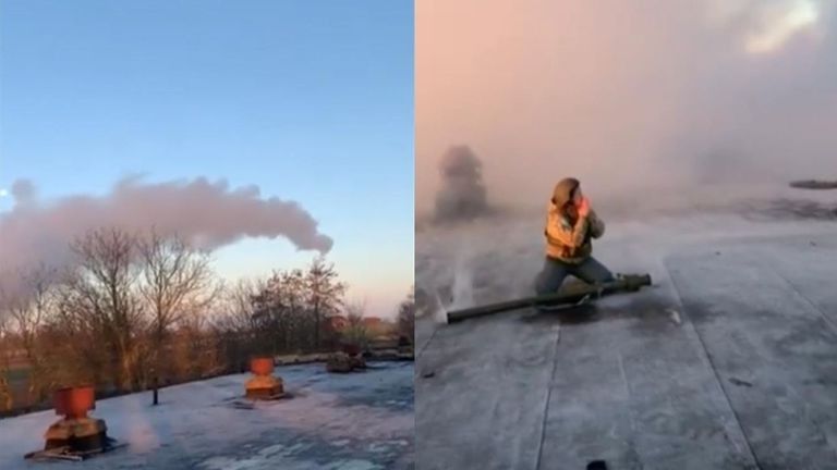 Pamjet e publikuara më poshtë shfaqin ushtaren ukrainase duke shkrepur predhën nga sistemi mobil i mbrojtjes kundërajrore – duke arritur të godasë një raketë ruse që ishte nisur drejt pozicioneve të ukrainasve.