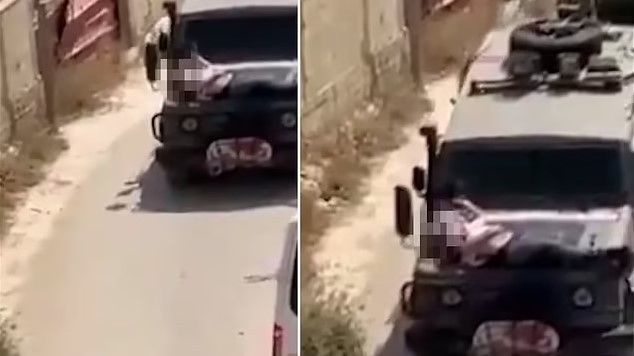 Në video shihen një palestinez i përgjakur nga Jenin i identifikuar nga banorët e atjeshëm si Mujahed Azmi, i cili ishte lidhur në veturë e cila po kalonte mes dy autoambulancave.