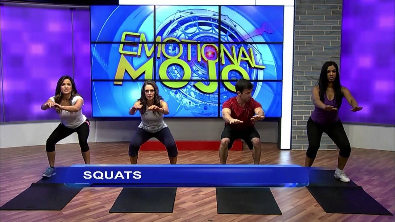 Kërcimet, pozitat galiç, pompat (lejohen edhe “pompat femërore” në gjunjë), “ushtrimet e muskujve të barkut” (me kokën në pozicionin neutral), vrapimi në vend (me ngritjen lart të gjunjëve) ose – për ata të cilëve vrapimi nuk u pëlqen – ecja në vend, ecja në hap, qëndrimi në duar dhe hedhja.