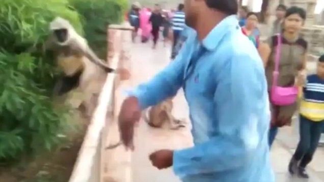 Në kopshtin zoologjik që ndodhet në Jodphur të Indisë, një burrë i paemëruar ka shkuar pranë një majmunit dhe i ka ofruar ushqim, pastaj e ka qëlluar në fytyrë.