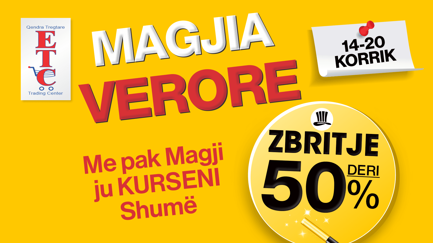 Për konsumatorët e ETC , kjo javë do të jetë më argëtuese nën përcjelljen e aktiviteteve Magjike. Rreth 5000 Dhurata , mundësi të jeni fitues i Çasteve Magjike të 50 Shportave Falas apo Shpërblimeve Automatike.
