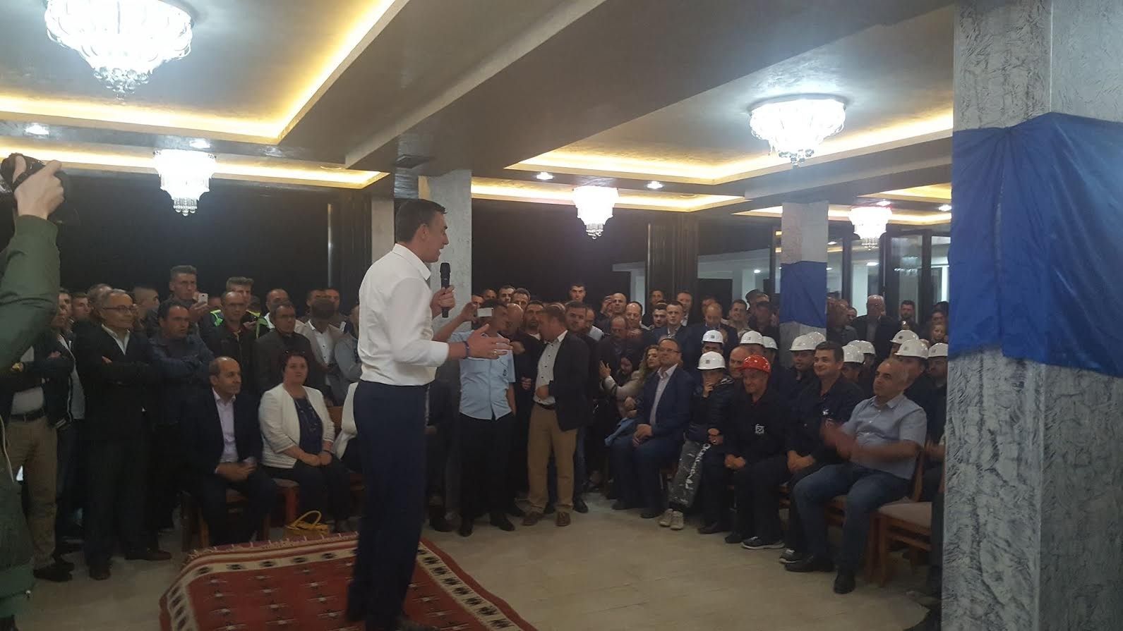 Gjithashtu të pranishëm në tubim ishin edhe minatorët e “Trepçës”, të cilët e falënderuan kryetarin Veseli për Ligjin për “Trepçën”.