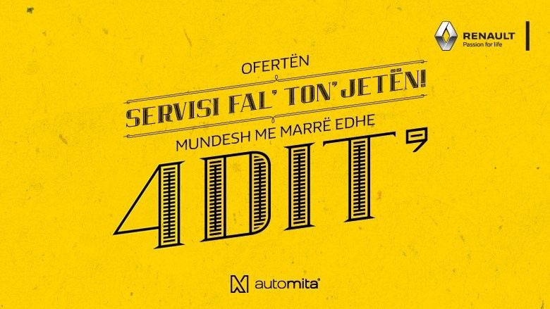 Nëse blini veturë Renault ose Dacia gjatë këtyre 4 ditëve, ju përveç se do ta keni servisin falas ton’ jetën me të gjitha shërbimet, gjithashtu edhe veturat veçse kanë zbritje në çmimet e tyre.