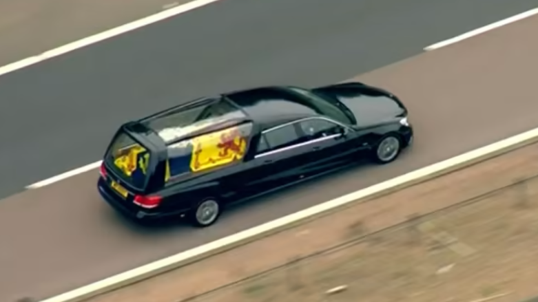 Vetura e zezë me pesë dyer Mercdes-Benz E-Class, vetura e varrimit e cila e barti arkivolin e Mbretëreshës Elizabeth II nga Balmoral në Edinburgh është ndërtuar nga ndërtuesi i famshëm gjerman i karrocave, Binz.