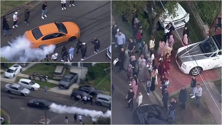 Veturat ‘djegin’ gomat dhe ‘nxjerrin tingull që ngjan me të shtënat’ – pamje të një feste dasme në Sidnei të Australisë