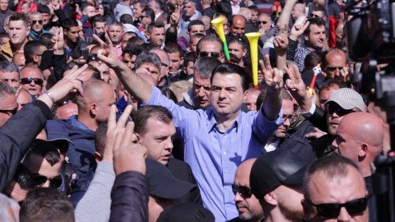 Në krye të turmës vijon të jetë vetë kreu i Partisë Demokratike, Lulzim Basha, në krah të të cilit ecën kryetarja e LSI-së, Monika Kryemadhi.