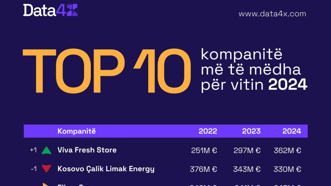 Viva Fresh, gjiganti i tregtisë me pakicë, ka dalë në krye si kompania më e madhe në vend, me një qarkullim prej 362 milionë eurosh, sipas raportit më të fundit të Data4X.