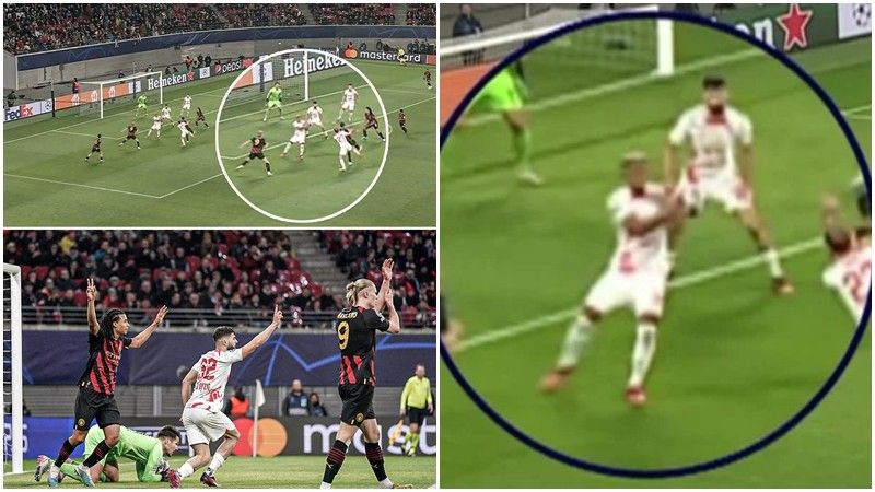 Ndërsa Rodri drejtonte një harkim drejt zonës për Riyad Mahrez, lojtari i Leipzigut dukej se instinktivisht ngriti duart lart, duke kontakti dukej i qartë.