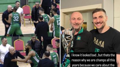 Trajneri Adis Beciragic iu vërsul basketbollistit të tij, Mikaile Tmusic, ku u desh ndërhyrja e lojtarëve të tjerë për të mos eskaluar situata.