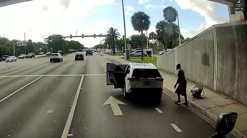 Skena e çuditshme në autostradën pranë Miamit dhe është parë nga dy kamionistë.