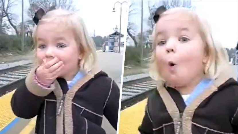 Vogëlushja pa për herë të parë një tren - reagimi i saj shkriu zemrat në mbarë botën