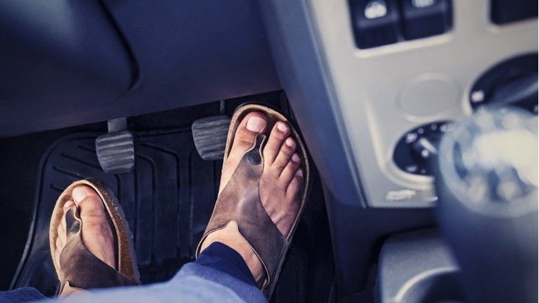 Me pantofla ose sandale, ekziston rreziku që pedali të ngecë midis këpucës dhe këmbës. Klubet evropiane të automobilave kanë hulumtuar rregullat e trafikut në shtete dhe kanë mbledhur informacione për dënimet për një ngasje të tillë.