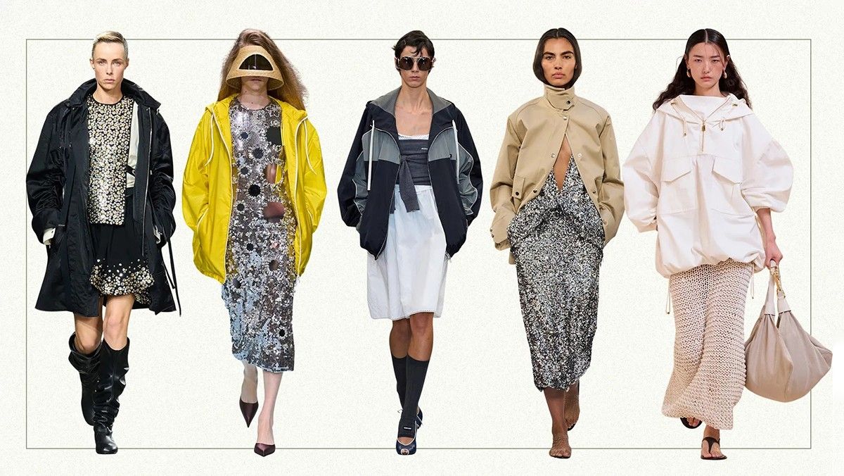 Në pasarelë, The Attico, Prada, Brandon Maxwell dhe Ralph Lauren kombinuan xhaketa të gjera najloni me fustane vezulluese, duke krijuar një pamje të lezetshme. Nga ana tjetër, Bottega Veneta ndoqi një rrugë më rastësore, duke kombinuar një xhaketë ngjyrë bezhë me pantallona të gjera.