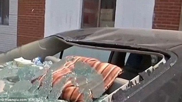 Xhami i veturës u thye nga breshka që ra prej katit të 26-të (Foto)
