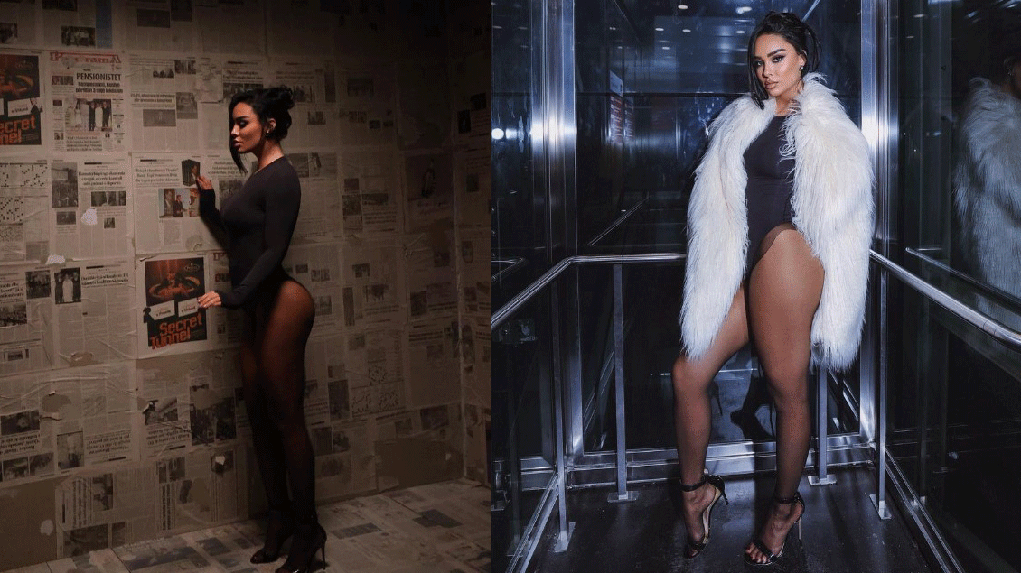 Në këto imazhe, ajo shfaqet tejet joshëse, duke reflektuar një stil provokues.