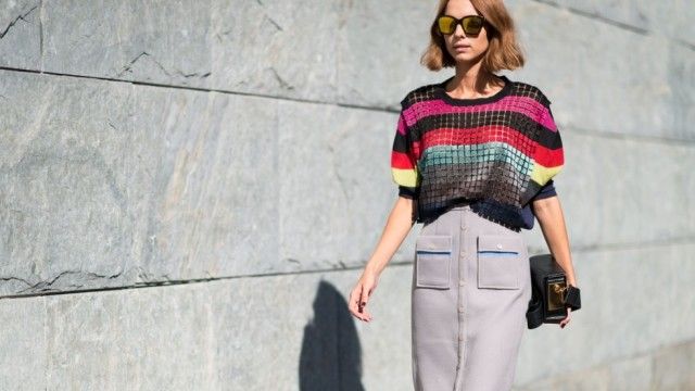 Ngjyrat e ylberit mund të kombinohen edhe me pantallona tub, me pallto në ngjyrë pastel dhe pupa për një veshje të mirë dhe vitaminike, siç këshillon Blair Eadie.