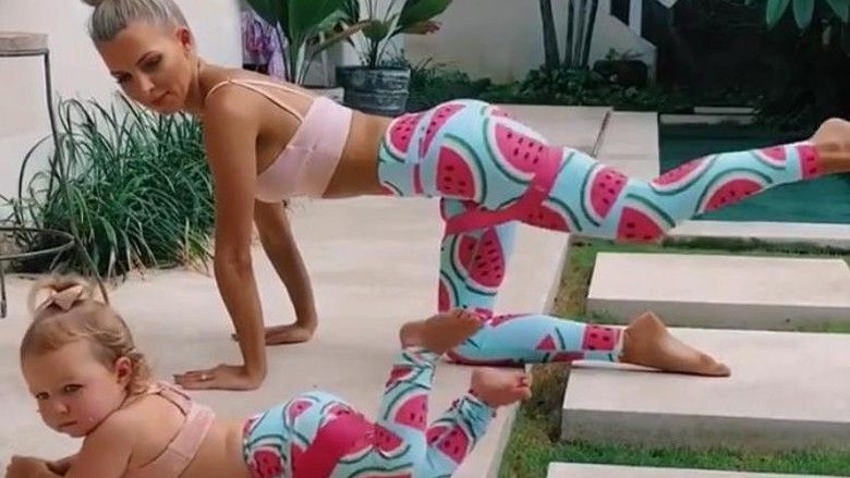 Ylli i Instagramit Hannah Polites, e cila 1.3 milionë fansa i ka bërë për vete me xhirimet e saj të fitnesit nga Bali, ka publikuar këtë xhirim në të cilin bën ushtrime me vajzën e vet dyvjeçare, Evaliah Grace.