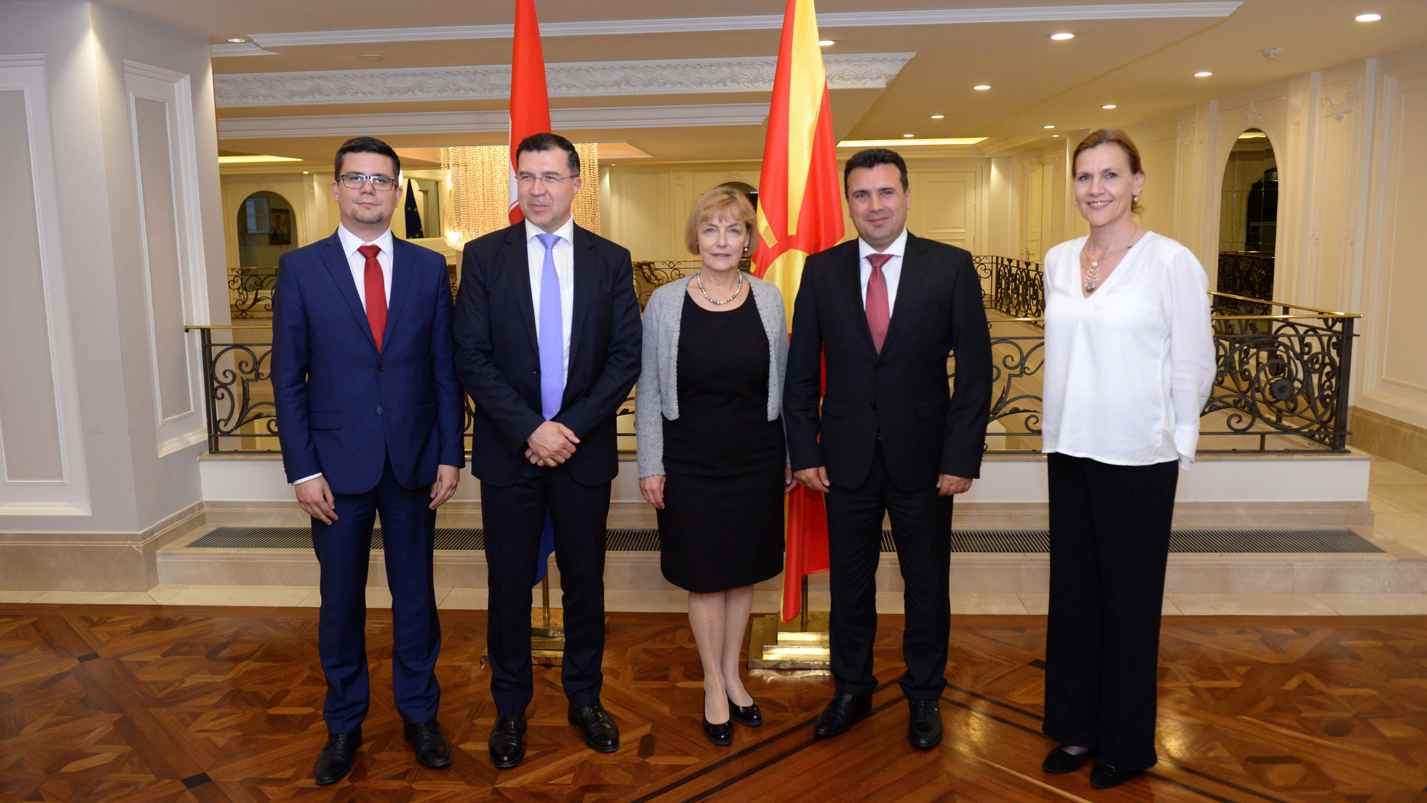 Kryeministri Zoran Zaev u takua me delegacionin nga Kuvendi i Kroacisë, i udhëhequr nga deputeti Domagoj Millosheviq, kryetar i Komisionit për Çështje Evropiane, i shoqëruar nga ambasadorja e Kroacisë në vend, Danijella Barishiq.
