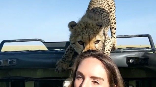 Siç edhe mund të shihet në pamje, gatopardi u merr erë dhe i lëviz flokët ndërsa ajo vazhdon të filmojë dhe përpiqet të mos lëvizë.