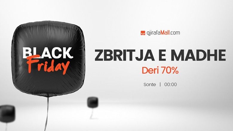 Sonte në ora 00:00 fillon zbritja e madhe e Black Friday, në qendrën më të madhe tregtare të blerjeve online në vend, në GjirafaMall.com. Si asnjëherë më parë, konsumatorët do të keni mundësi të përfitojnë nga zbritja deri në 70%, në super produkte nga të gjitha kategoritë si: produkte shtëpiake, veshje, kozmetikë, sport dhe fitnes, produkte për fëmijë dhe shumë të tjera. Të gjitha këto nga brendet më të njohura si Samsung, Tommy Hilfiger, Nike, Loreal, Victoria’s Secret, Hugo Boss, dhe shumë të tjera. Të gjitha me transport deri në shtëpinë tuaj kudo në Kosovë.