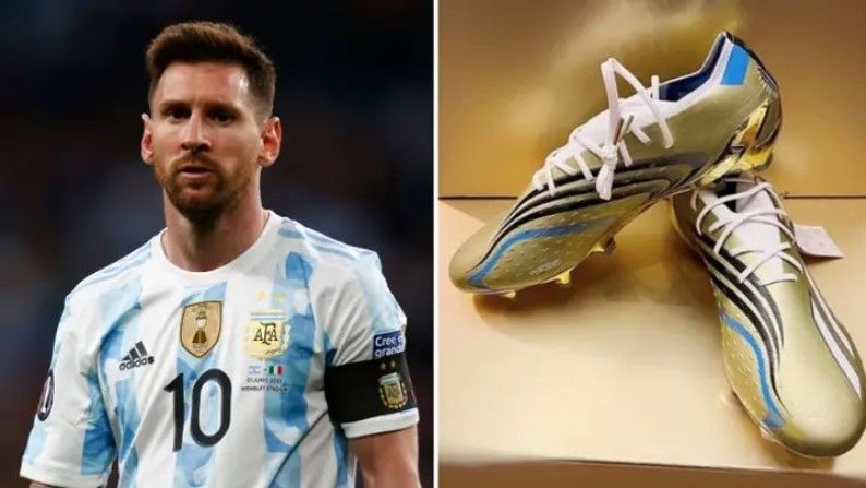Këpucët sportive të arta janë sikurse ngjyra e trofeut të Kupës së Botës, të cilën Messi dhe Argjentina me siguri do të kërkojnë ta fitojnë në muajin dhjetor.